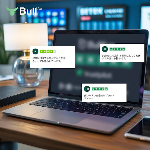 Trustpilotでは、ユーザーはBullfxoを高く評価しており、プラットフォームの信頼性、豊富なツール群、そして迅速なサポートを称賛しています。これらのレビューは、Bullfxoが長期的な関係を築くための優れた選択肢であることを裏付けています。